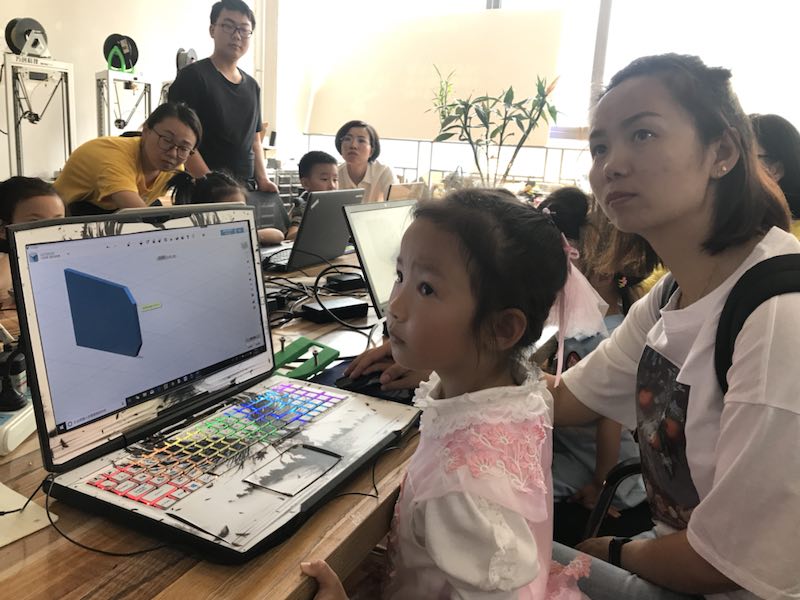 活动中孩子和家长们在讲解老师的帮助下,一起进行了计算机编程和3D打印活动,最后还用自己亲手打印的船模进行了比赛。