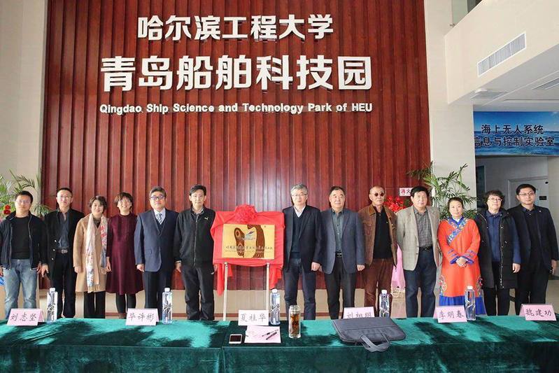 校党委副书记夏桂华、青岛海军博物馆筹备办公室主任刘相明同志共同为哈尔滨工程大学出版社青岛事业部揭牌。