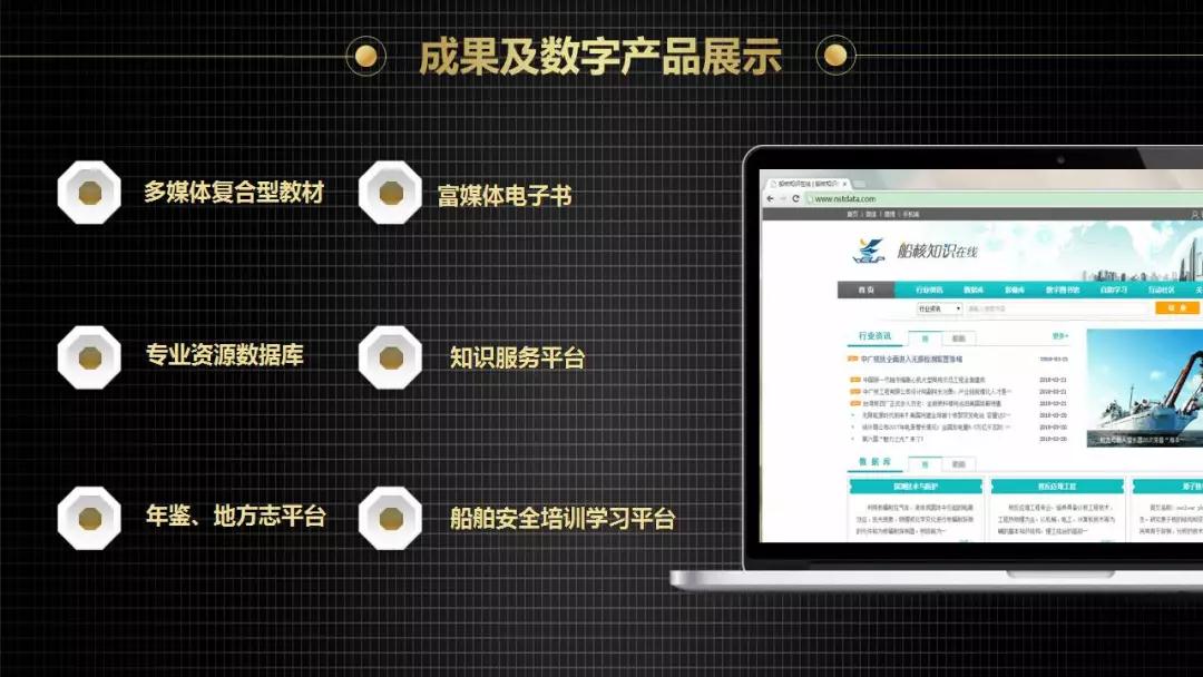 同时数字出版部还形成了自己独有的特色产品,包括多媒体型复合教材、富媒体电子书、专业资源数据库、知识服务平台、船舶安全培训学习平台、年鉴、地方志平台等等。