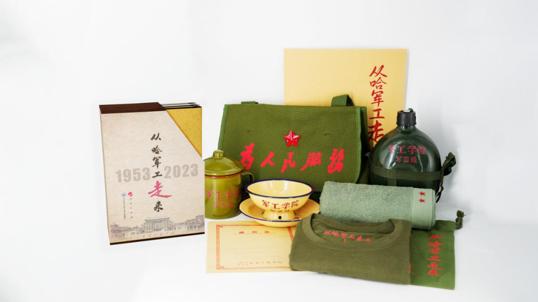 哈尔滨工程大学出版社以《从哈军工走来》出版文创为延伸,力求还原书中阐述的历史场景,还原军工学院军需处的生活物件。开发并还原了T恤、练习簿、挎包、军用搪瓷缸、水壶、餐碗、菜盘、毛巾、束口袋等充满历史感的9种物件,让历史场景栩栩如生地浮现于眼前,丰富《从哈军工走来》图书的代入感、存在感,满足读者阅读以外的不同感受。它们的存在仿佛跨越了时间与空间的距离,搭起了历史与现实的桥梁,让书外的你我能够深切感受当年的军工人、军工事、军工物。
