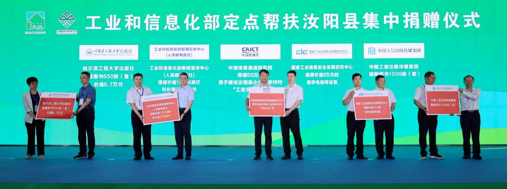 中国信息通信研究院、工业和信息化部新闻宣传中心(人民邮电报社)、中国工信出版传媒集团、国家工业信息安全发展研究中心、河南天一文化传播股份有限公司等单位分别在现场向汝阳县进行了捐赠。