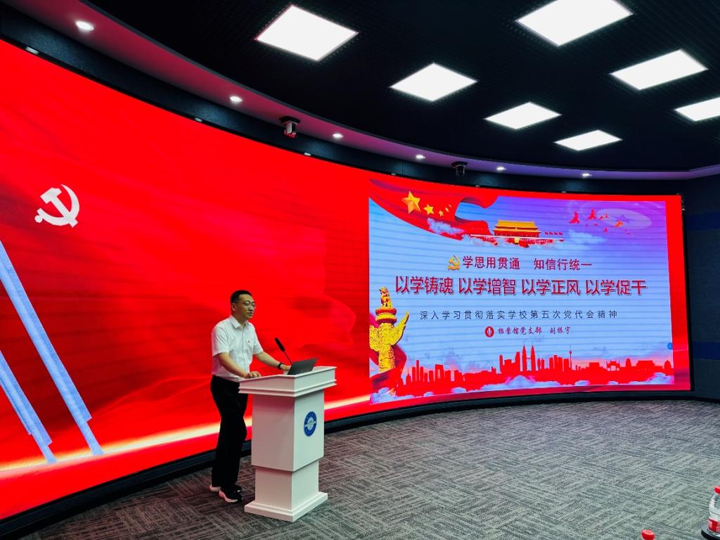 档案馆党支部书记、馆长刘振宇以《以学铸魂 以学增智 以学正风 以学促干》为题讲授党课。他结合贯彻落实学校第五次党代会精神,抓落实促转型,从以学铸魂固根本、以学增智强本领、以学正风树形象、以学促干求实效四个方面就习近平新时代中国特色社会主义思想主题教育的主要内容进行领学。