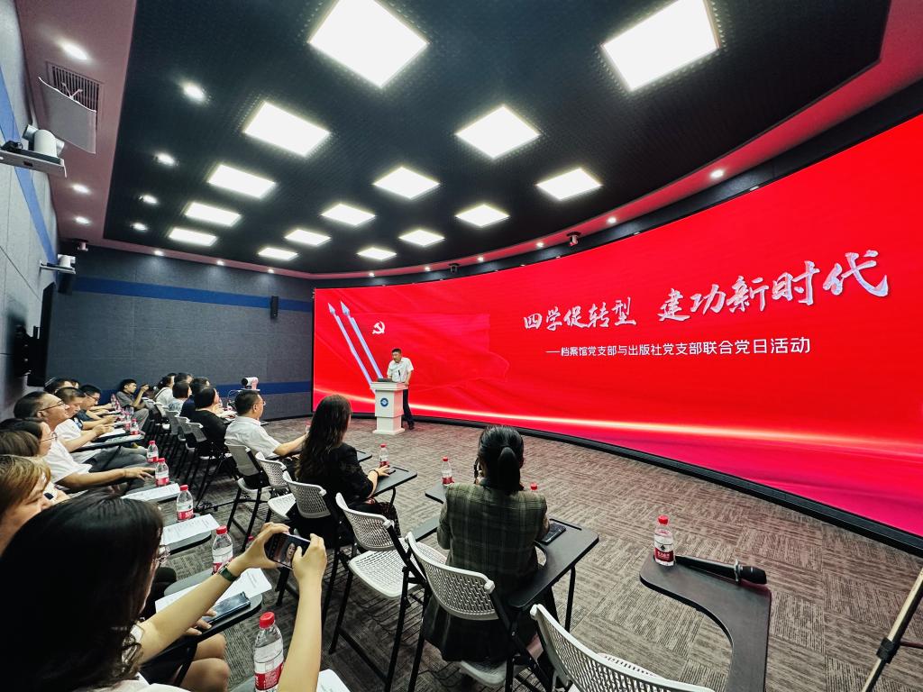 活动现场分别播放了出版社党支部和档案馆党支部形象宣传片,宣传片就双方所辖业务、工作方针、部门发展建设进行了展示。