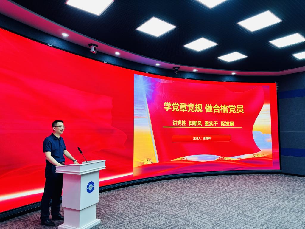 出版社副总编辑兼副社长张林峰以《学党章党规 做合格党员》为题讲授党课。他围绕党章的历史沿革、党章的主要内容、端正入党动机、树立共产主义理想等方面进行领学。随后,他从学术出版高端化、教材出版系统化、主题出版地域化、传统出版融合化、出版服务多元化五个方面介绍了出版社整体情况。