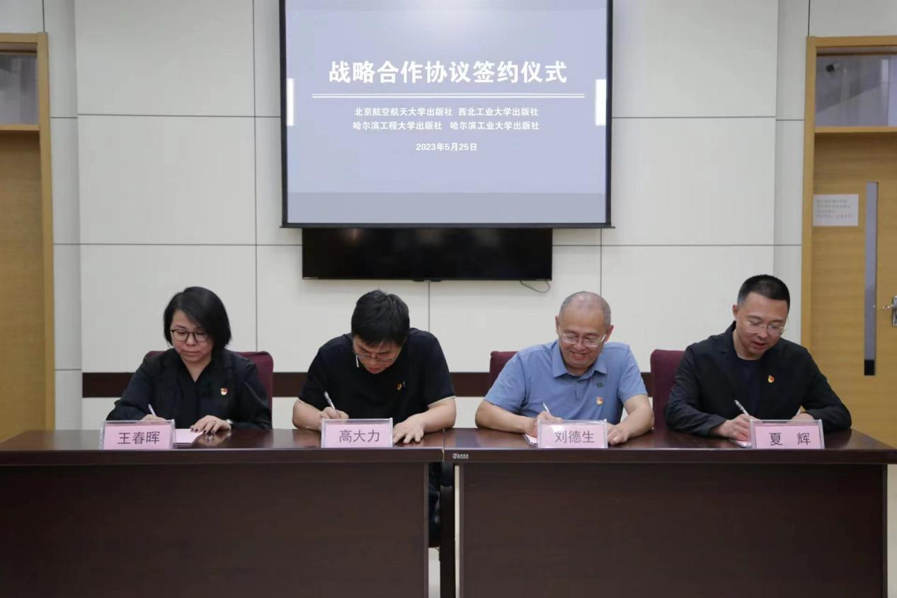 四家大学出版社同属于工业和信息化部,在航空、航天、航海、材料、核、舰船等领域具有较强的出版优势,为开展进一步合作奠定了基础。为深入贯彻落实习近平总书记关于宣传思想工作的重要思想,认真贯彻党对出版工作的全面领导,充分发挥出版在建设现代化产业体系、推进新型工业化、服务支撑制造强国和网络强国建设的重要作用,落实工业和信息化部出版工作会议要求,加强对推进新型工业化的研究阐释,推出系列高水平出版物,强化部系统协同合作,推动出版事业高质量发展,北京航空航天大学出版社、西北工业大学出版社、哈尔滨工业大学出版社、哈尔滨工程大学出版社签署战略合作协议。