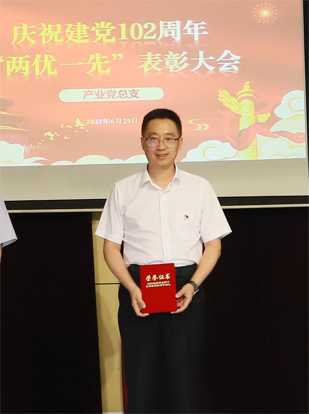为庆祝中国共产党成立102周年,全面贯彻落实党的二十大精神,推动学习贯彻习近平新时代中国特色社会主义思想主题教育走深走实,充分展示先进典型的精神风范,激励广大党员奋发进取、创先争优,6月29日,产业党总支对优秀党务工作者和优秀共产党员进行了表彰。我支部张林峰同志获得优秀党务工作者荣誉称号,秦占友、樊容含、雷霞同志获得优秀共产党员荣誉称号。