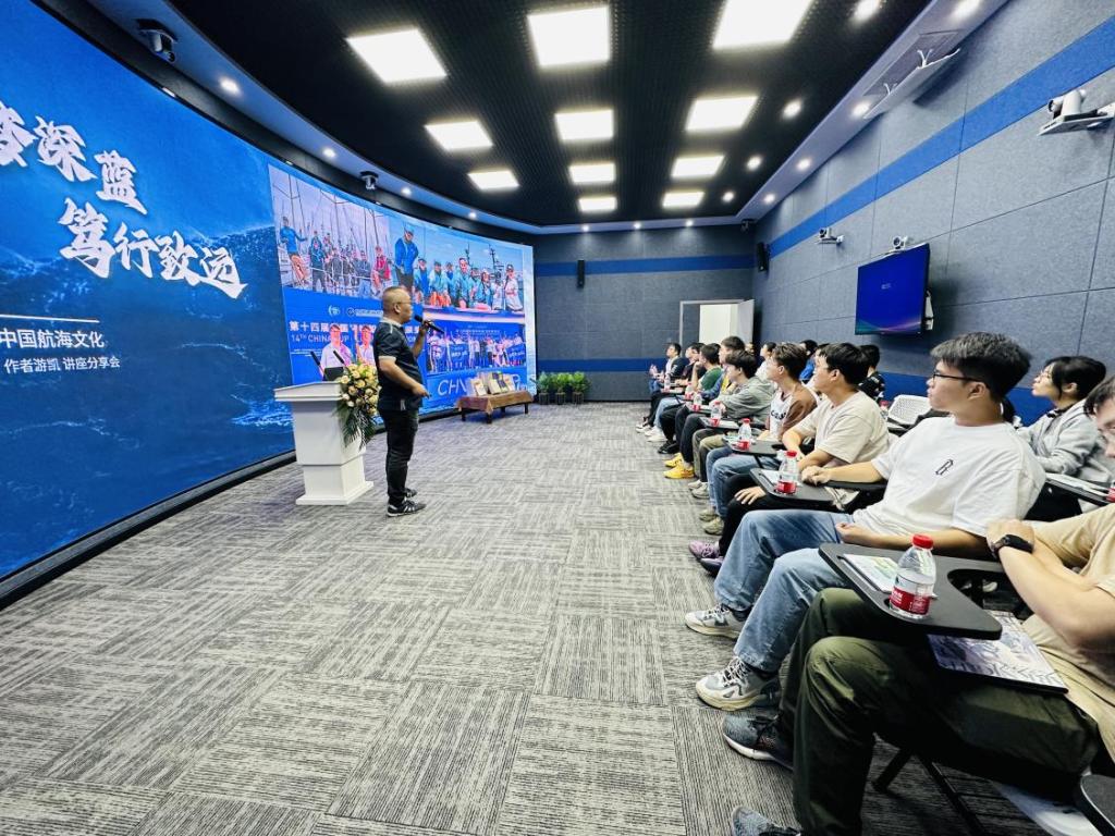 作者游凯为师生们讲述了中国古代的航海文化、古船(广船、福船、鸟船、沙船)文化、码头文化、灯塔文化,中国人自己的航海故事,以及亲身经历、亲眼所见的沿海各地的风土民情。希望通过本次分享活动,带领同学们走近海洋、探索海洋,认识到海洋开发和建设海洋强国的重要性,以国家战略需求为导向,自觉履行海洋科技高水平自立自强的使命担当,为推动海洋事业繁荣发展,加快建设海洋强国贡献自己的力量。