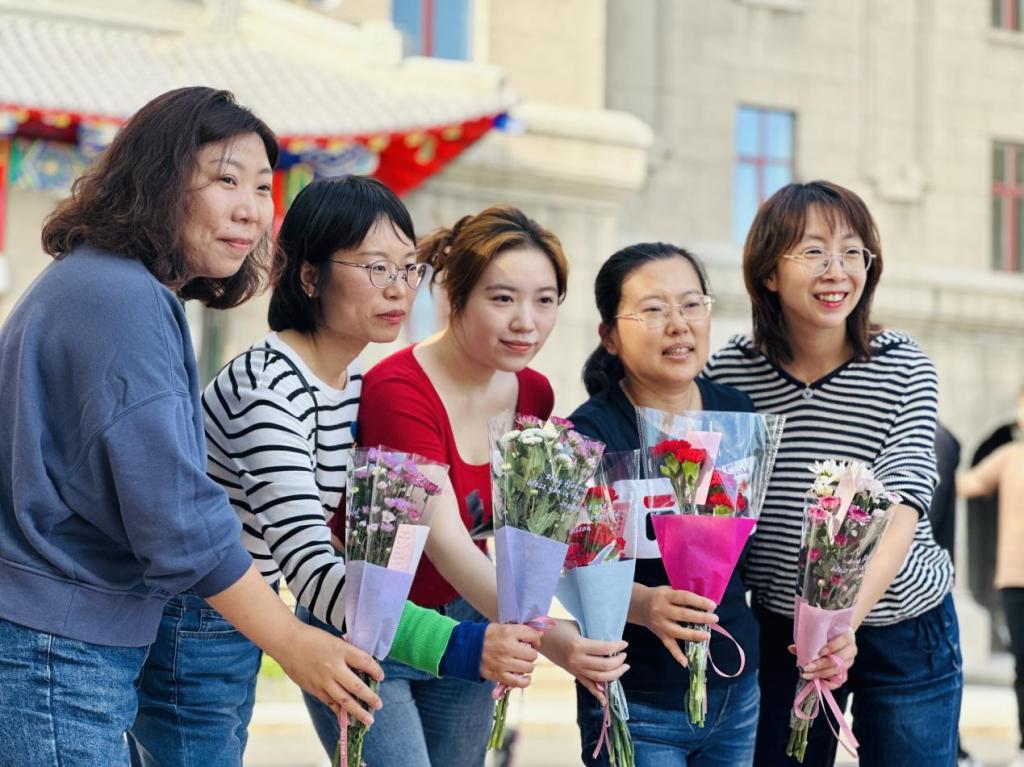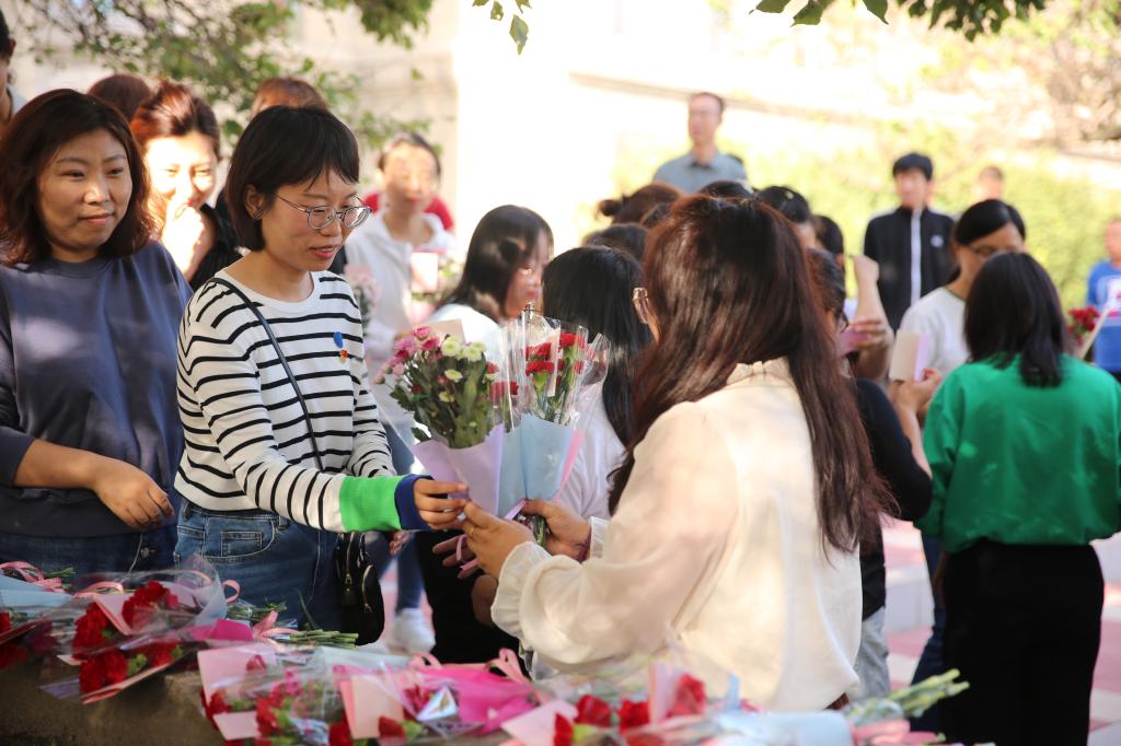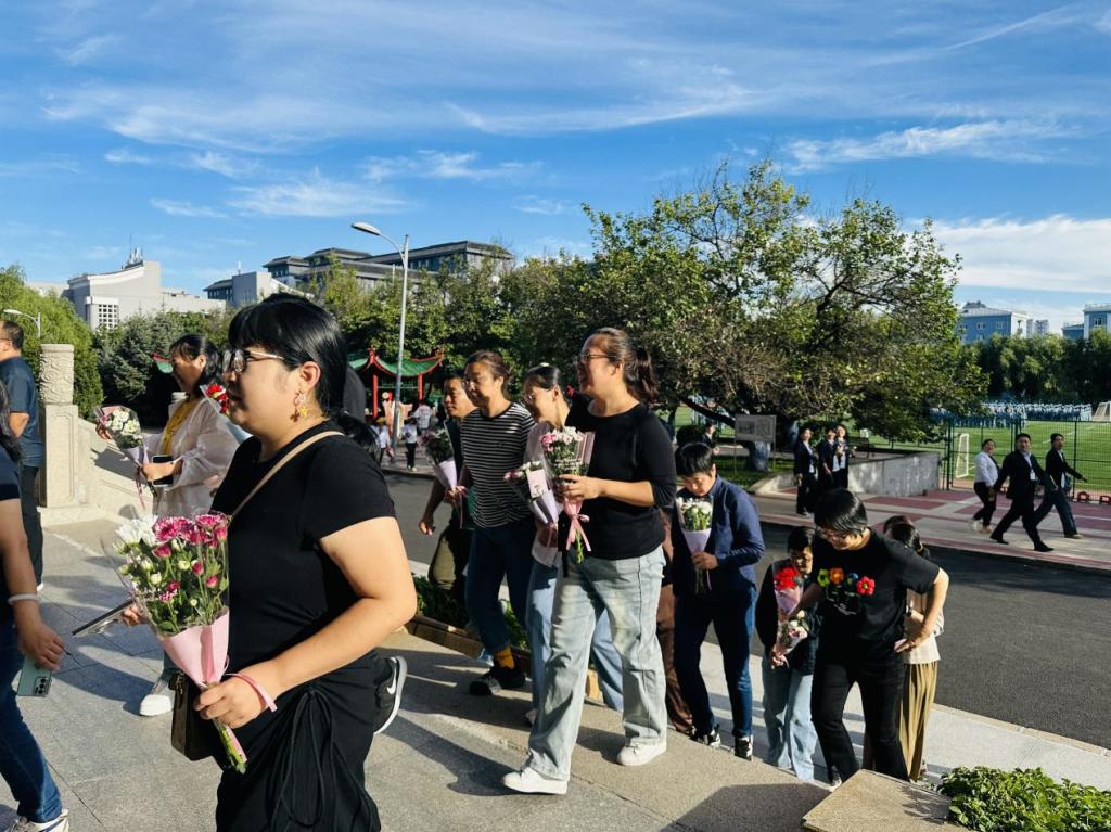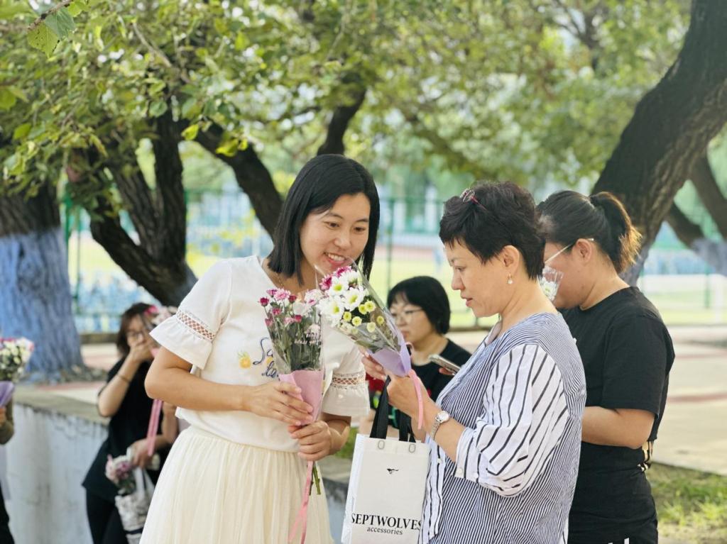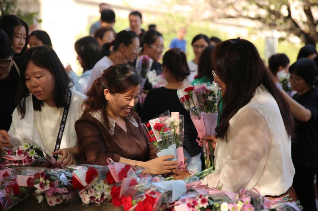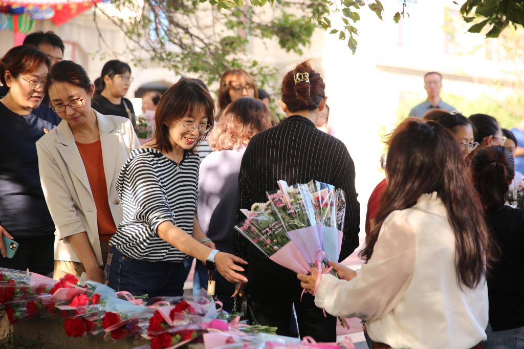 社里为全体工作人员献上暖心花束,每束花中都配有一张贺卡,上面写道,“编辑老师:字里行间总关情,成书路上齐向前。祝您教师节快乐!”大家手拿这一束束惊喜,在学校杏花长廊前合影,定格一个个美好瞬间。