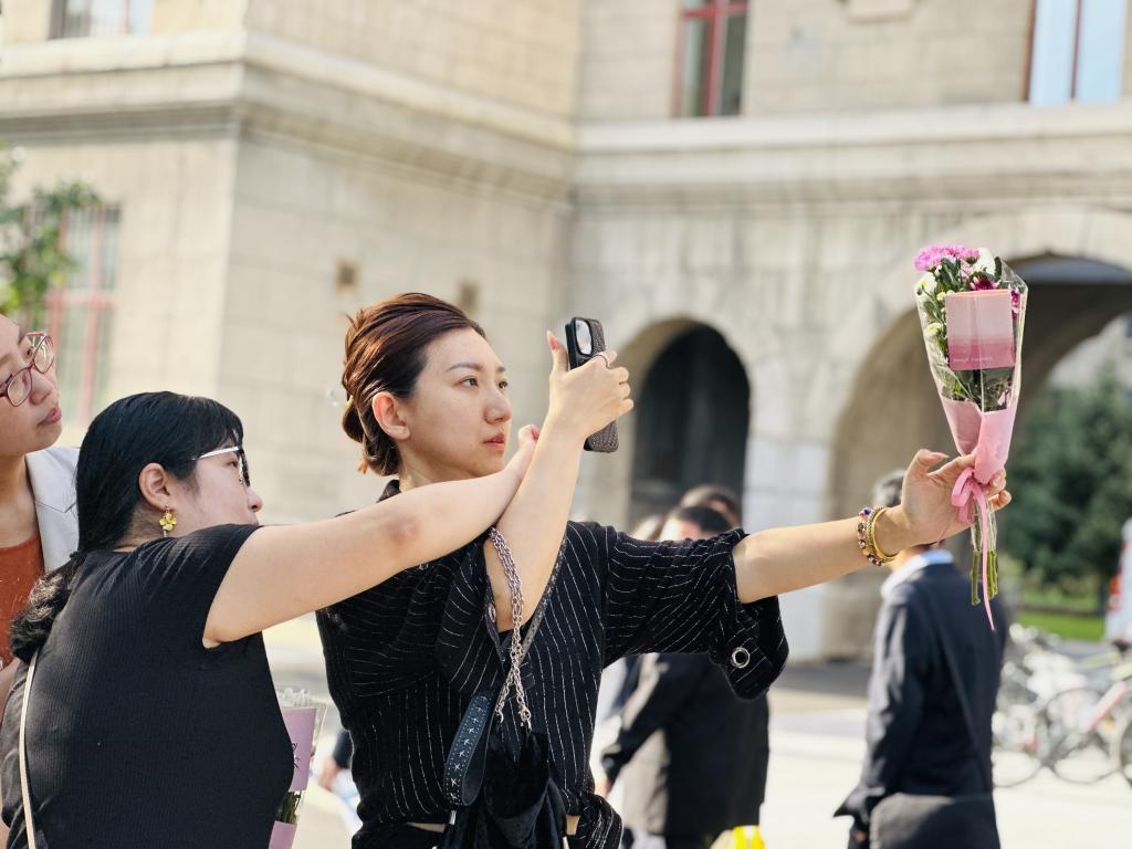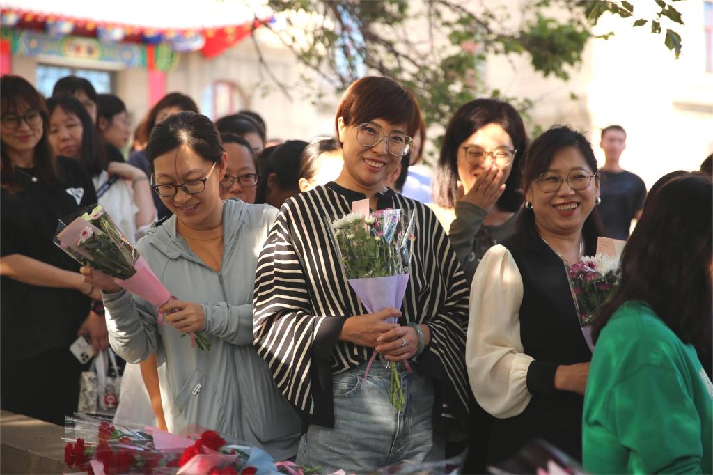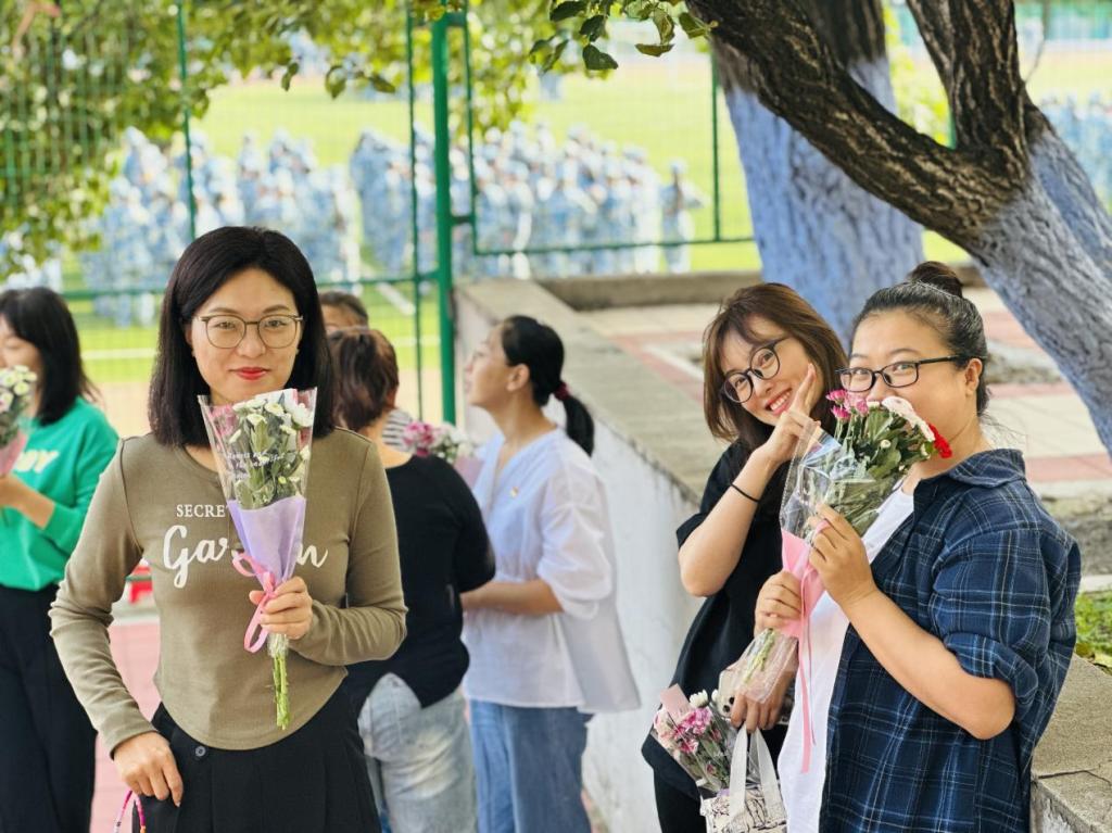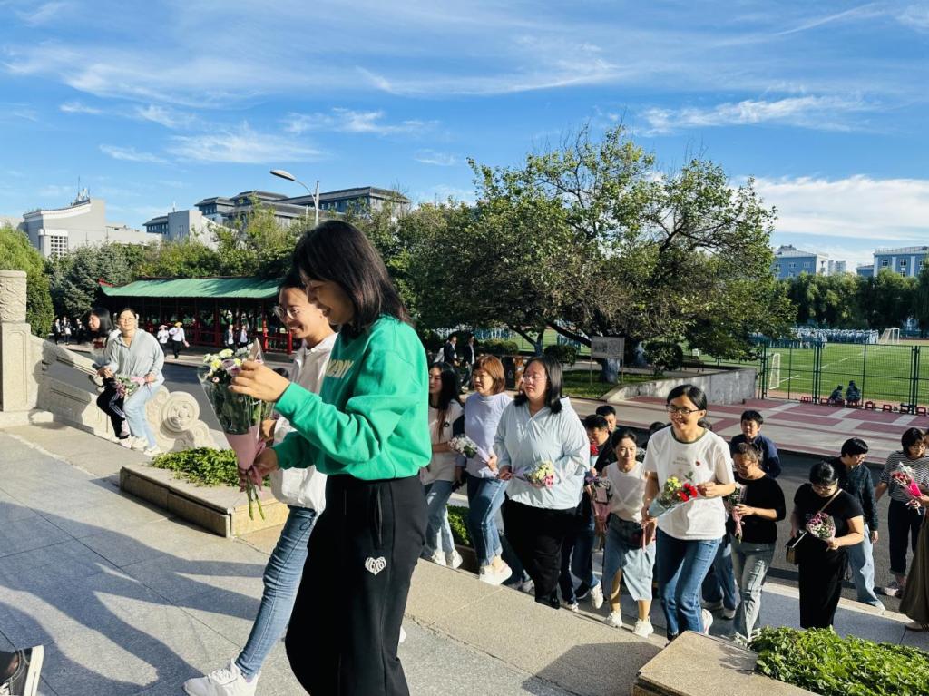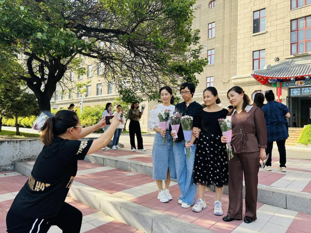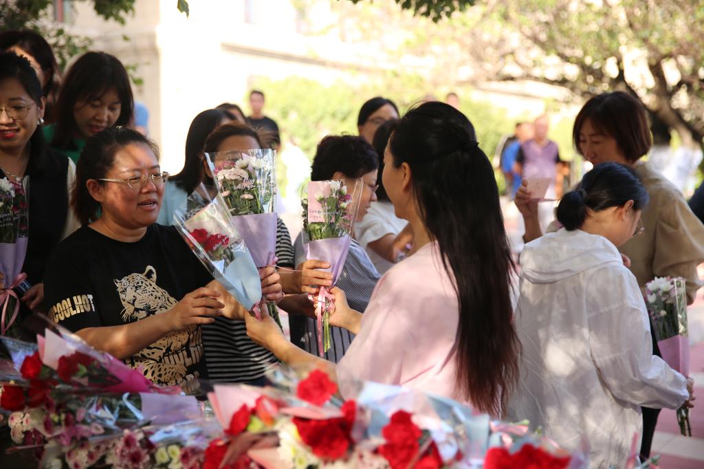 社里为全体工作人员献上暖心花束,每束花中都配有一张贺卡,上面写道,“编辑老师:字里行间总关情,成书路上齐向前。祝您教师节快乐!”大家手拿这一束束惊喜,在学校杏花长廊前合影,定格一个个美好瞬间。