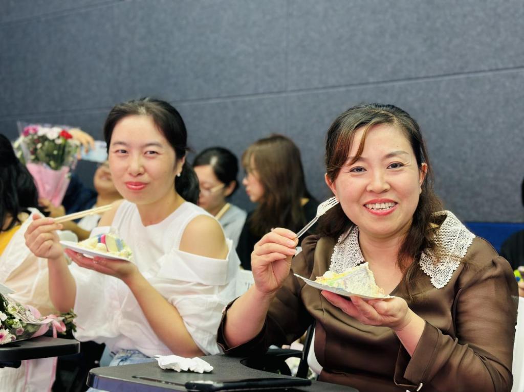 每一份蛋糕送到大家手中,都是满足的味道,融化进心里,甜到了心坎。在一阵阵欢笑声和掌声中,大家感受到了职业的光荣与幸福。