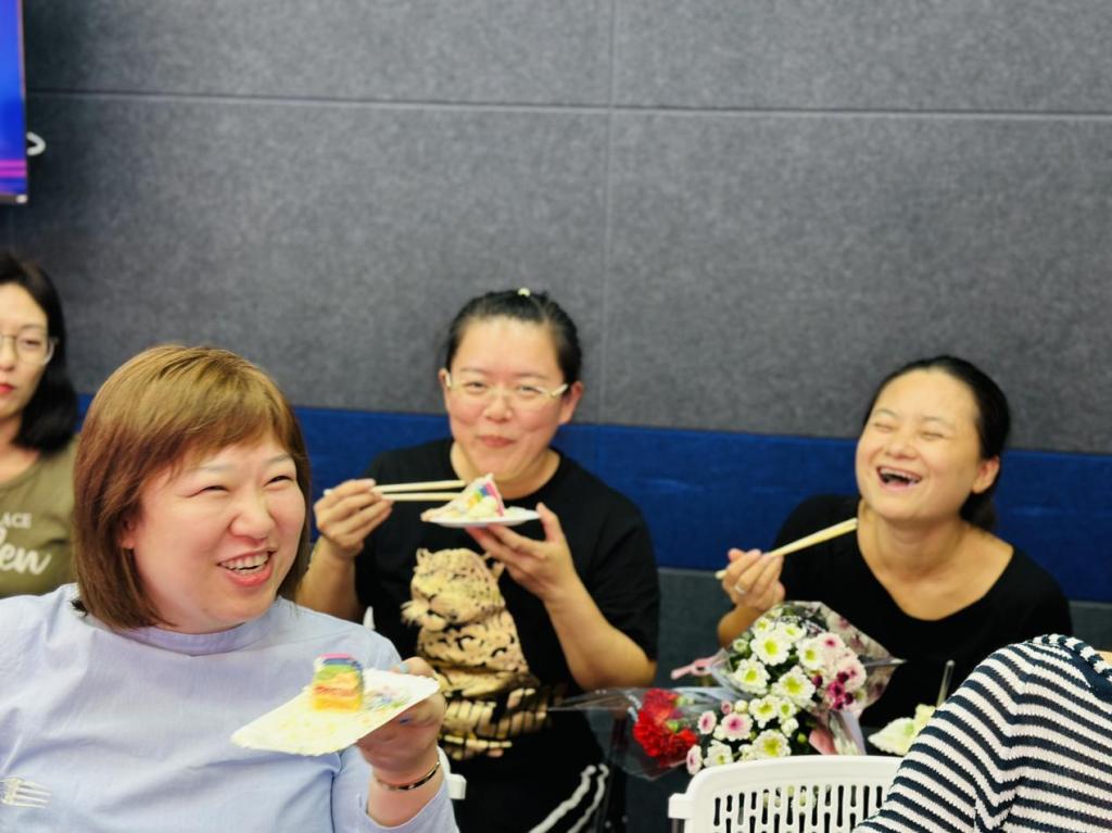 现场部分同事分享了自己的感受。编辑张曦说:“社里送来的鲜花不仅是对我们努力工作的认可,更是对我们的支持和鼓励。每一朵鲜花都传递着感恩与爱的信息,让我们在教师节感受到了温暖和感动。蛋糕的甜美口感,是对编辑们付出的一种回馈和奖励。每一口蛋糕都让我们感受到了团结、互助和友谊的力量。我们会珍惜这个特殊的日子,怀揣着对出版事业的热爱和执着,继续努力,为我们的编辑工作做出更大的贡献。”