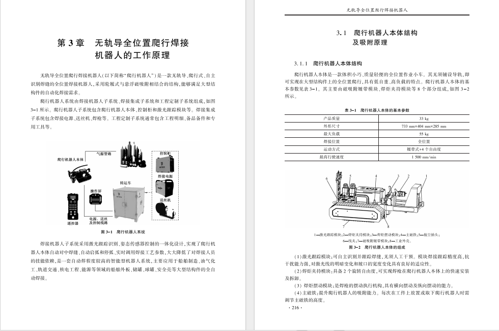 本书是为了适应自动化焊接技术发展需要而编写的。本书在总结焊接机器人发展和焊接技术实践经验的基础上,介绍了焊接机器人领域智能化、自动化发展方向中最具代表性的产品——无轨导全位置爬行焊接机器人。它可吸附于导磁性工件表面自由爬行,无须铺设轨道和人工导向,可以实现大型结构现场横焊、平焊、立焊、仰焊、曲面焊等全位置自动跟踪焊接,并实现了多层、多道自动布道焊,具有焊接质量好、效率高、成本低、劳动条件安全、操作人员远离危险区等明显优势。