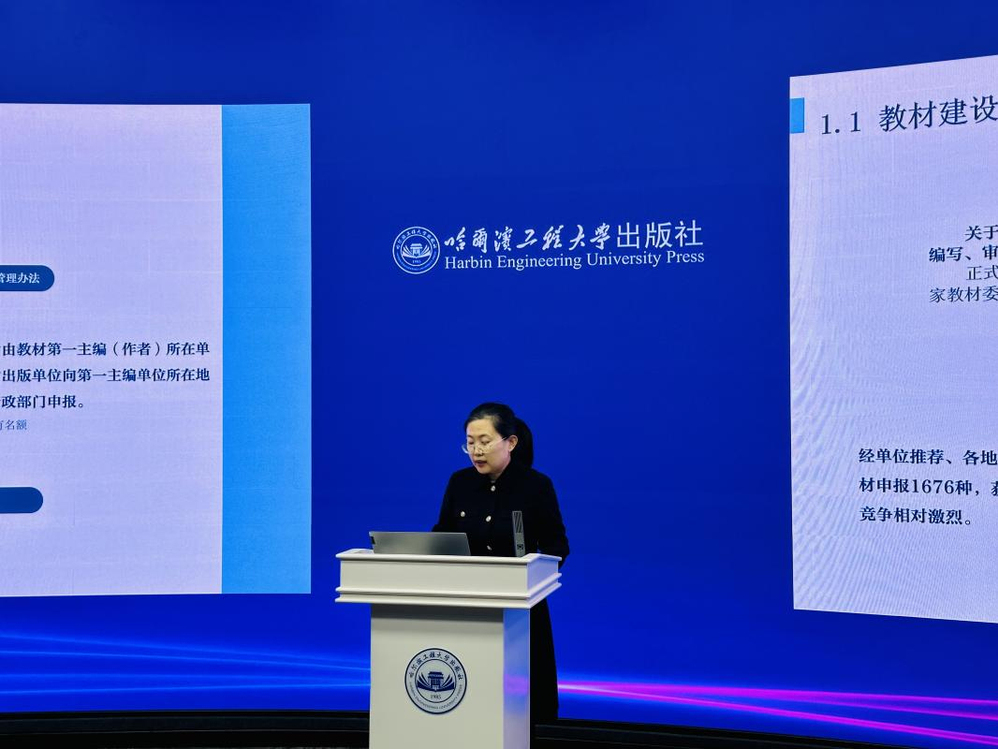 策划编辑二部部长石岭作了题为《出版在您身边》的报告,分别从教材培育、专著出版、版权引进、版权输出等方面进行汇报与讲解。