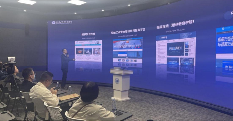 最后,调研小组前往我社重点打造的融合出版中心——“三室一厅”(云端报告厅、智慧教室、虚拟演播室、融媒体编辑室)进行参观。融合出版中心主任李雪峰对融合出版中心的建设初衷、实现功能及服务群体进行了详细的介绍。
