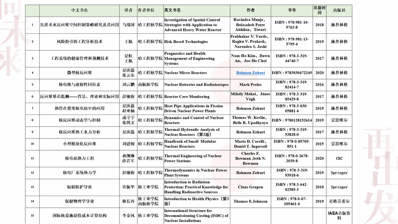 “先进核科学与技术译著出版工程”是国内第一套面向核科学与技术领域的译著出版项目,项目建设的目的是通过系统规划、行业申报、专家评审,面向世界科技前沿和教学体系有组织、有计划地系统引进并翻译、出版国外经典教材、优秀学术著作和科普图书。后续的工作中,哈尔滨工程大学出版社作为项目依托管理单位,将以打造精品、打造高端、打造行业标杆为目标,在精选全球高端图书、专业词汇标准化、翻译精准化等方面继续发力。
