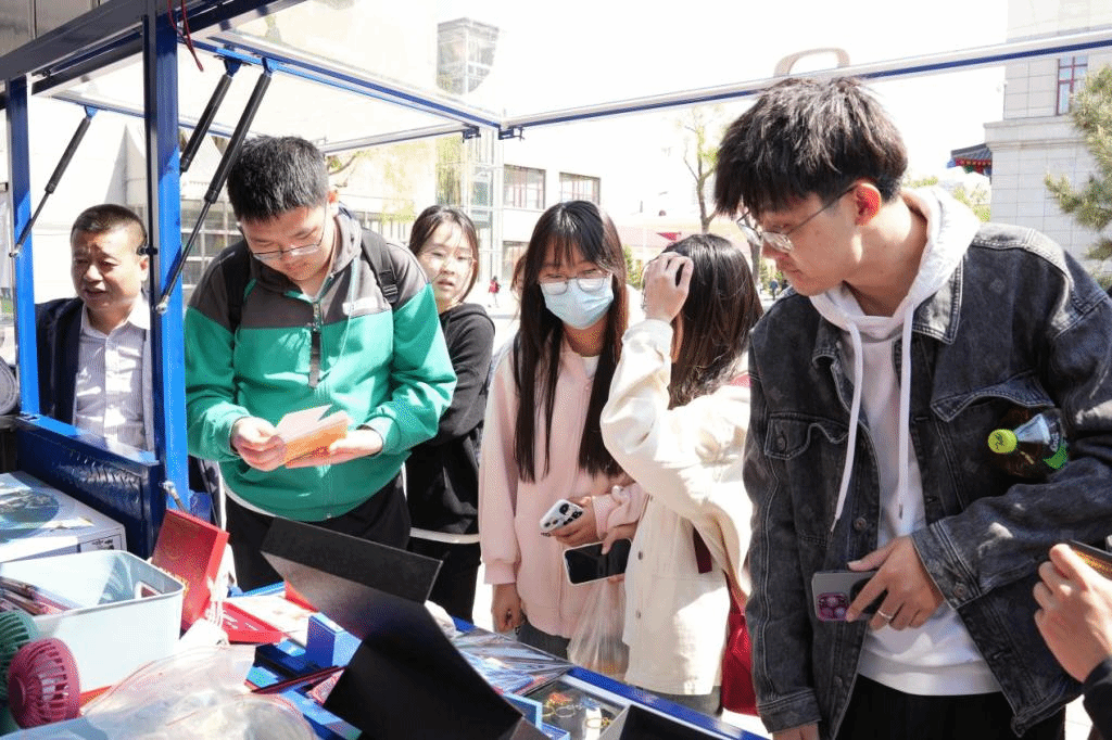 “移动书屋”内展示了琳琅满目的70周年校庆文创纪念品。几十种文创纪念品设计独特,带有鲜明的“工程印记”,兼具收藏价值和实用性,承载着哈工程人的青春与信仰,展示了学校浓厚的文化底蕴,深受师生喜爱。