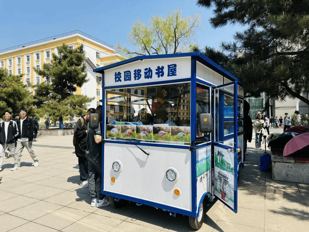 “移动书屋”设计新颖、宽敞整洁、视野通透、移动灵活,可随时更换停放地点,满足校内不同生活、工作区域师生的阅读需求。师生可在上班、放学途中就近挑选所需书籍,十分便捷。移动书屋更加倾向于享受阅读的惬意与随性,丰富师生精神世界的同时又达到了高效传播知识和资源共享的目的。