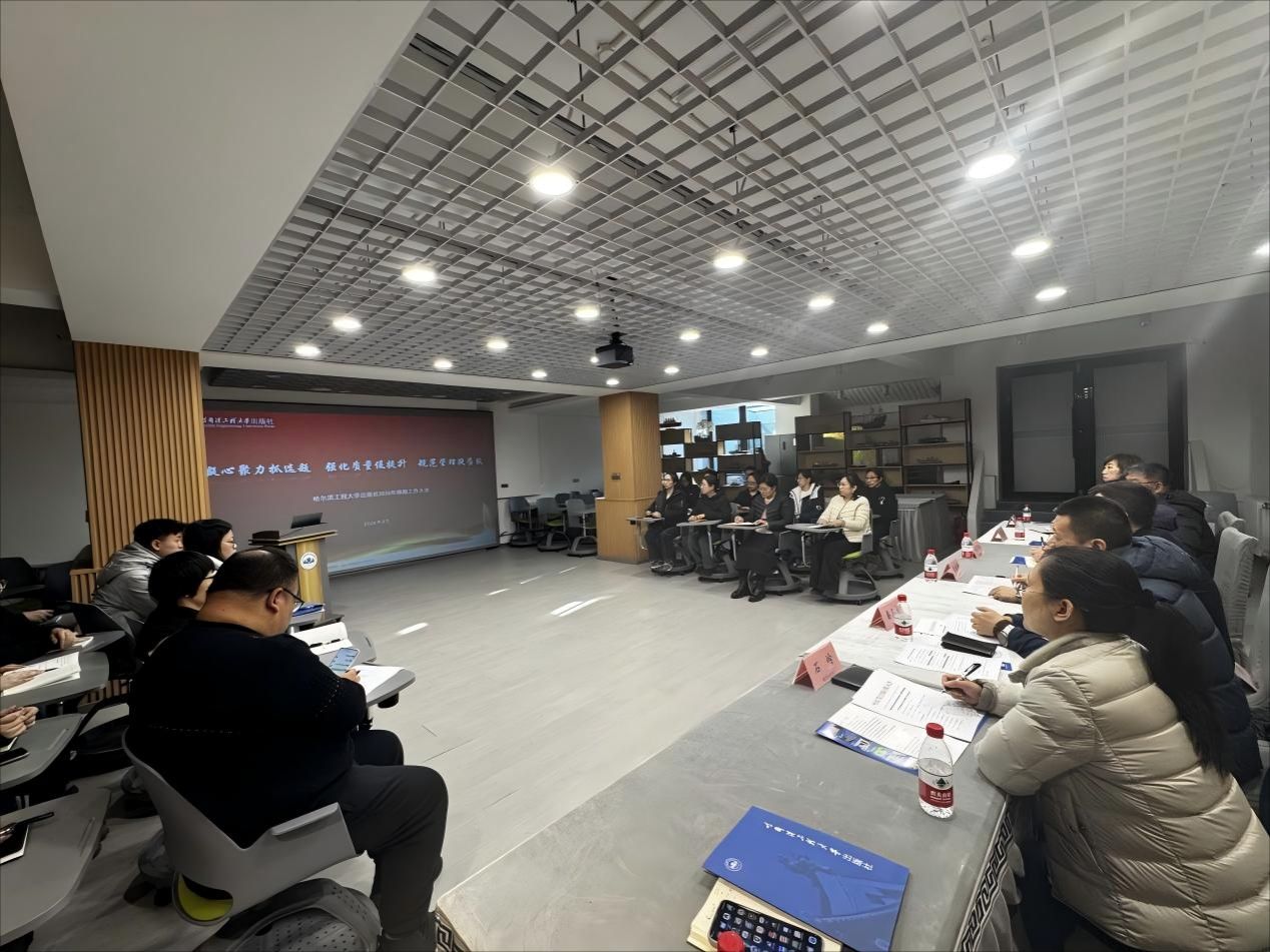为贯彻落实学校春季工作会议精神,明确2026年编辑出版工作方向,筑牢选题策划与质量把控核心防线,3月6日下午,哈工程出版社召开以“凝心聚力抓选题,强化质量促提升,规范管理提质效”为主题的2026年编辑工作大会暨第52期产业先锋论坛。出版社领导班子、总编室、战略发展部及全体编辑人员参会。
